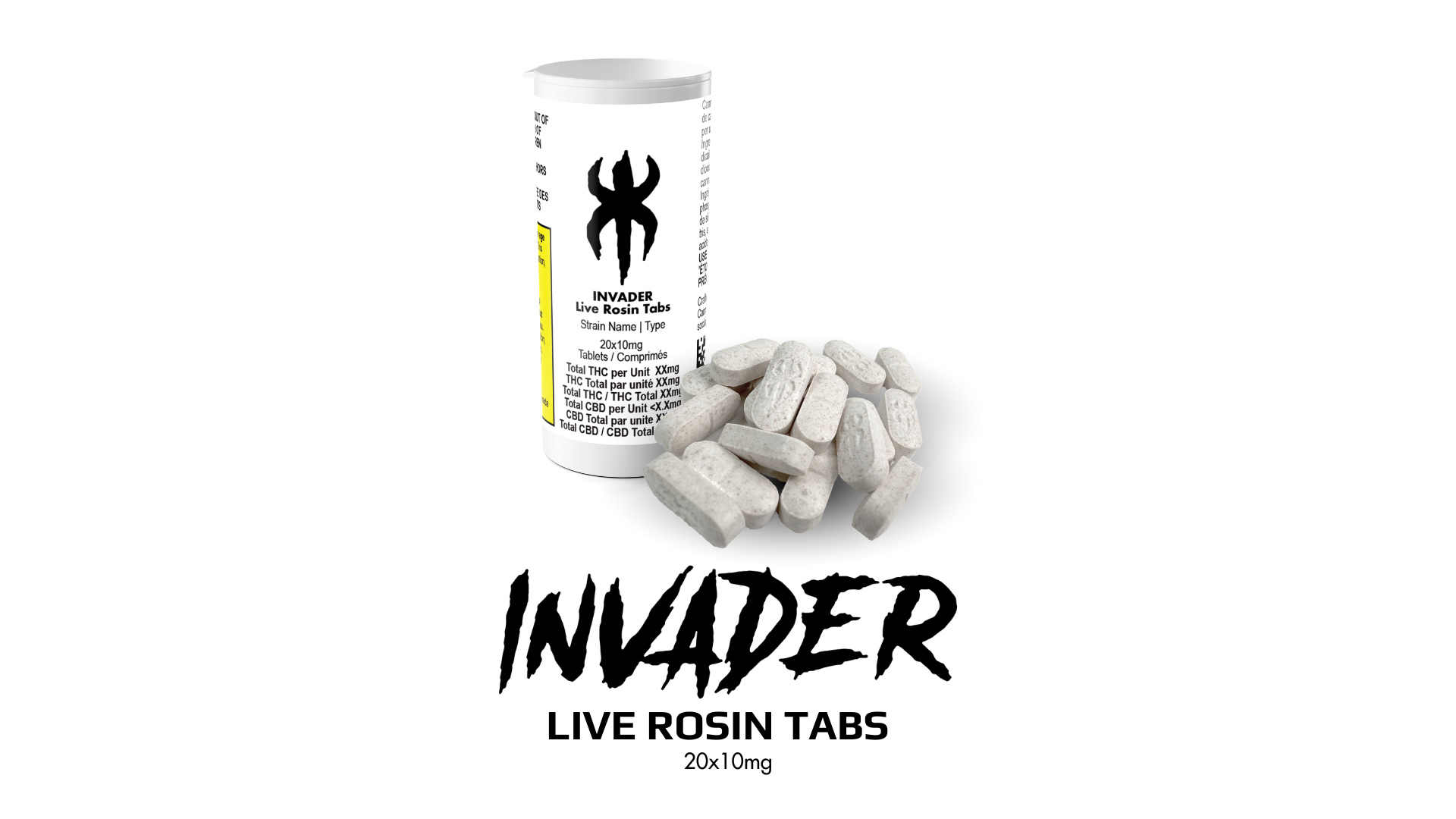 Pressed tablets crafted with premium 100% solventless INVADER live rosinDelivers precise, discreet, full-spectrum dosingEasy-to-consume size and shape, featuring a score mark for easy splitting
